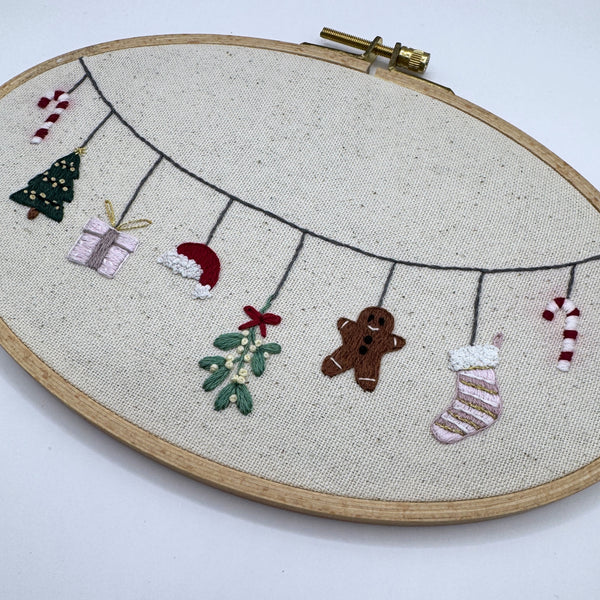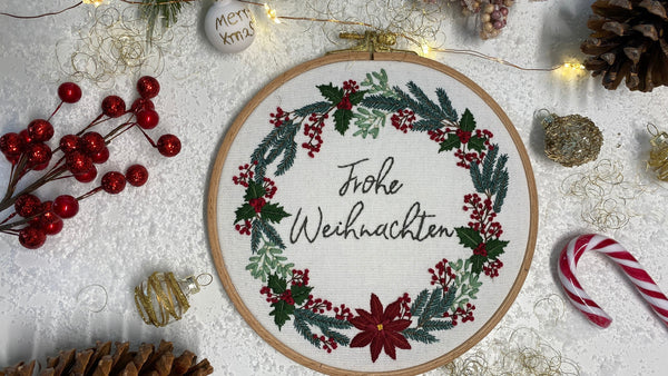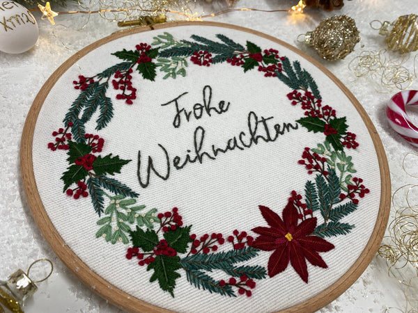 Stickvorlage, Weihnachtskranz mit Zuckertangen, Vorlage zum Sticken