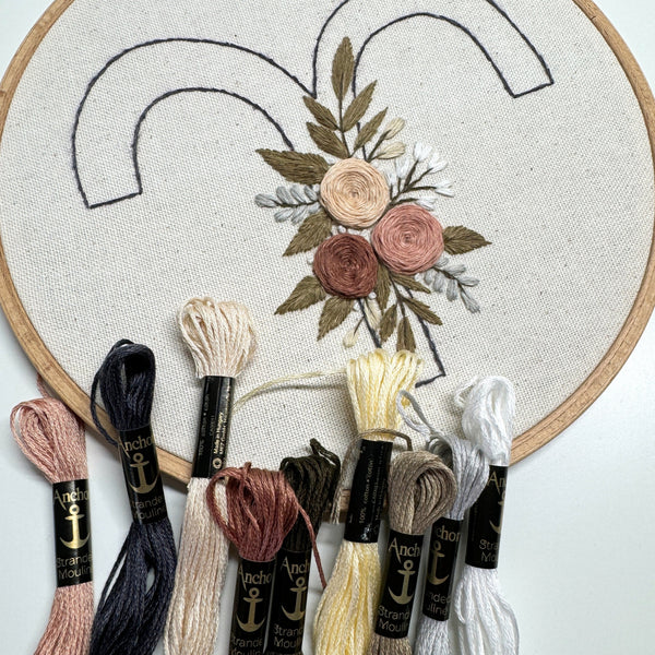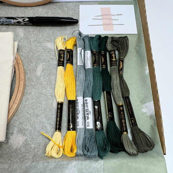 Sie enthält fünf hochwertige Farben der Marke DMC mit je 4 Metern Garn.