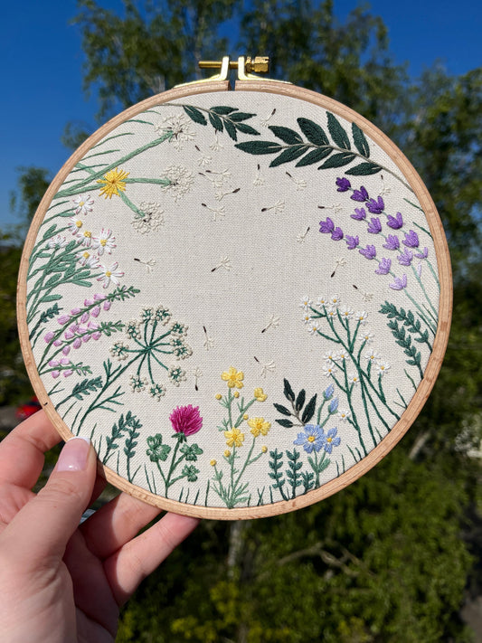Stickvorlage, Wildblumenwiese, Wildblumen, Vorlage zum Sticken, Sticken, Ringkissen, Anleitung, Stickbild, individuell