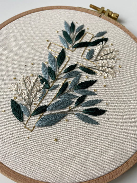 Stickvorlage, Kreuz, Greenery Kreuz, Modern Embroidery, Sticken, personalisierbar, Taufgeschenk, Konfirmation, Kommunion, Hochzeit