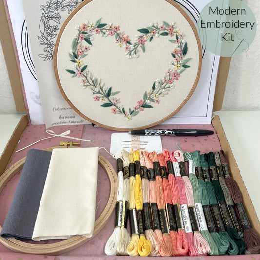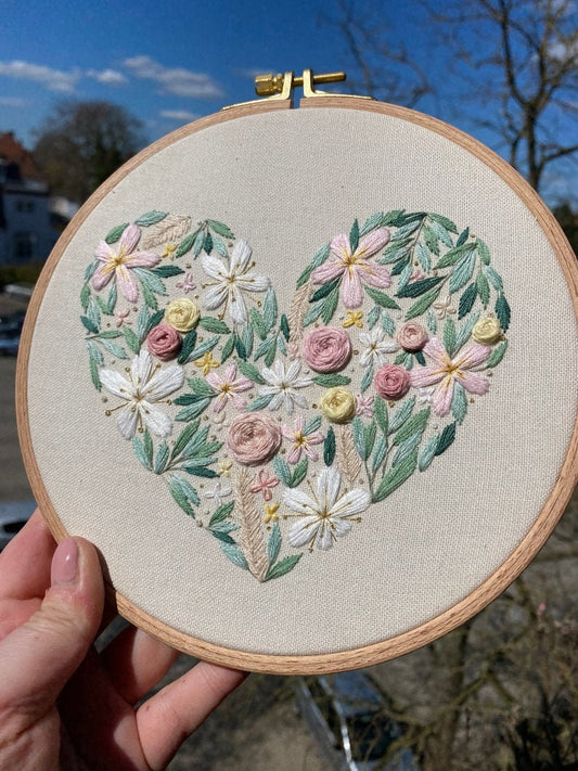 Stickkit "Blumenherz", Set zum Sticken