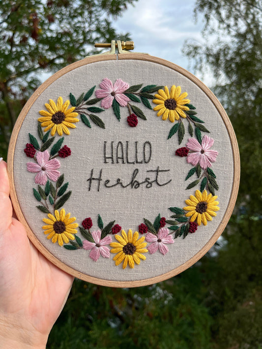 Stickvorlage, Herbstkranz, Sonnenblumenkranz, Herbst, Vorlage zum Sticken, Sticken, Herbstdeko, Anleitung, Stickbild, individuell