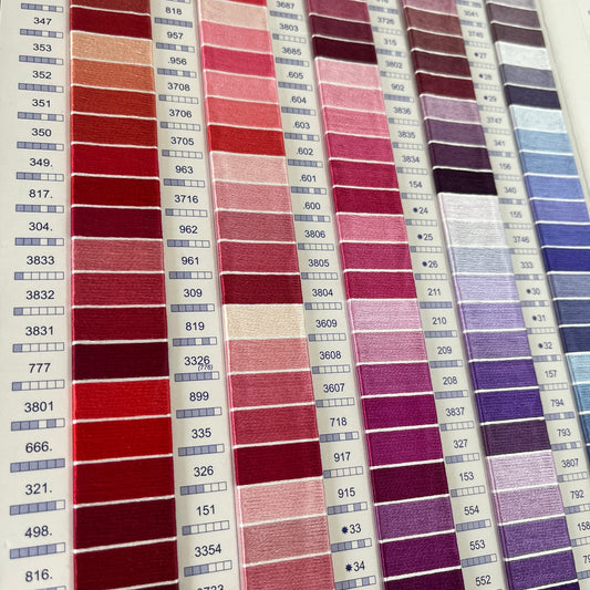 Stickgarn Farbliste DMC, Farbkarte DMC Stickgarn, Farbkarte mit echten Fäden