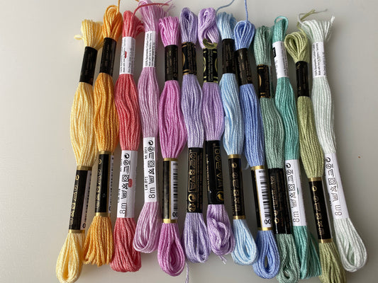 Stickgarn Garnpalette, Sticktwist, Stickgarn, 13 Garndocken, Stickgarnset "Pastell"