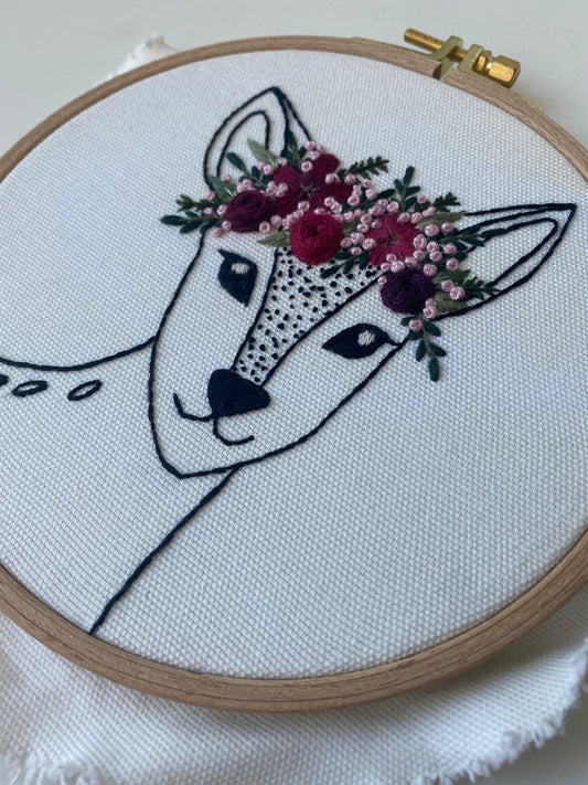 Stickvorlage Reh mit Blumenkranz, Stickbild, Sticken Anfänger, Embroidery Pattern, Kinderzimmer