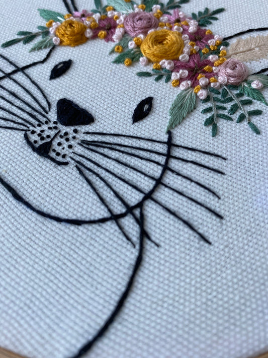 Stickvorlage, Osterhase, Hase mit Blumenkranz, Hase, Stickbild, Sticken Anfänger, Embroidery Pattern, Kinderzimmer, Anleitung Sticken