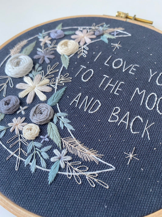 Stickvorlage, Boho, Mond, I love you to the moon and back, Sticken lernen, Stickbild, Sticken, personalisierbar