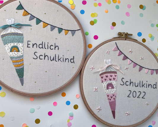 Stickvorlage, Schultüte, Zuckertüte, Stickanleitung, Einschulung, Stickbild, Geschenk, Vorlage zum Sticken, Geschenk Einschulung