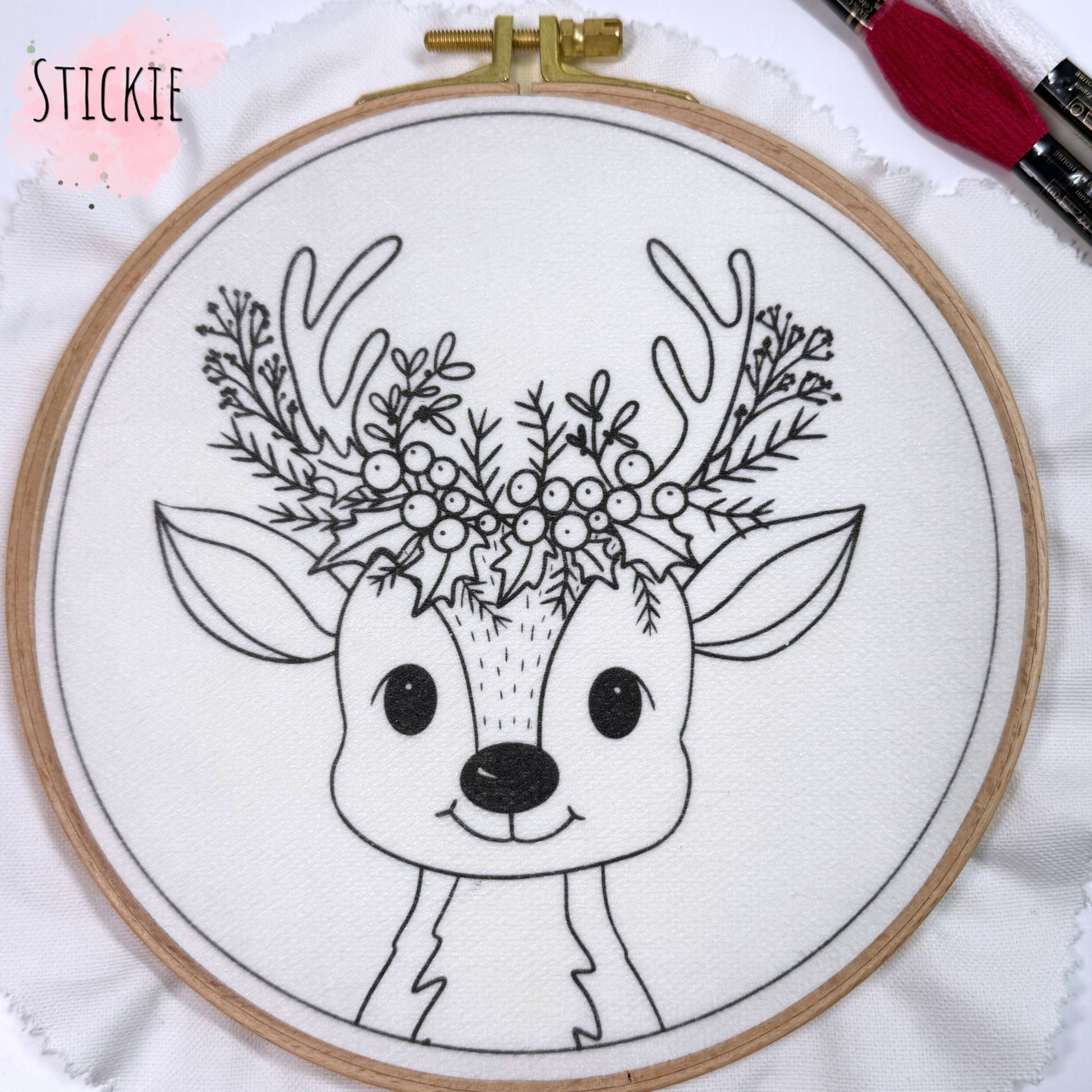Dieses süße Rentier ist ein vielseitiges Stickie Motiv, das nicht nur perfekt in die Winter und Weihnachtszeit passt, sondern auch wunderbar in meine beliebte Waldtier Reihe integriert werden kann. Mit ein paar farblichen Anpassungen lässt sich das Motiv auch nach der kalten Jahreszeit verwenden. Statt roter Beeren kannst du zum Beispiel Heidelbeeren sticken und dem Rentier so einen frischen, natürlichen Look verleihen. Deiner Kreativität sind keine Grenzen gesetzt. Das Rentier ist für einen 16 cm Stickrahmen ausgelegt und eignet sich ideal für alle, die naturinspirierte Stickmotive lieben. In meinem Shop findest du außerdem weitere Waldtiere im ähnlichen Stil wie Hase, Reh, Igel, Fuchs und Eichhörnchen. Vielleicht erkennst du im Rentier ja sogar einen kleinen Hirsch 😄