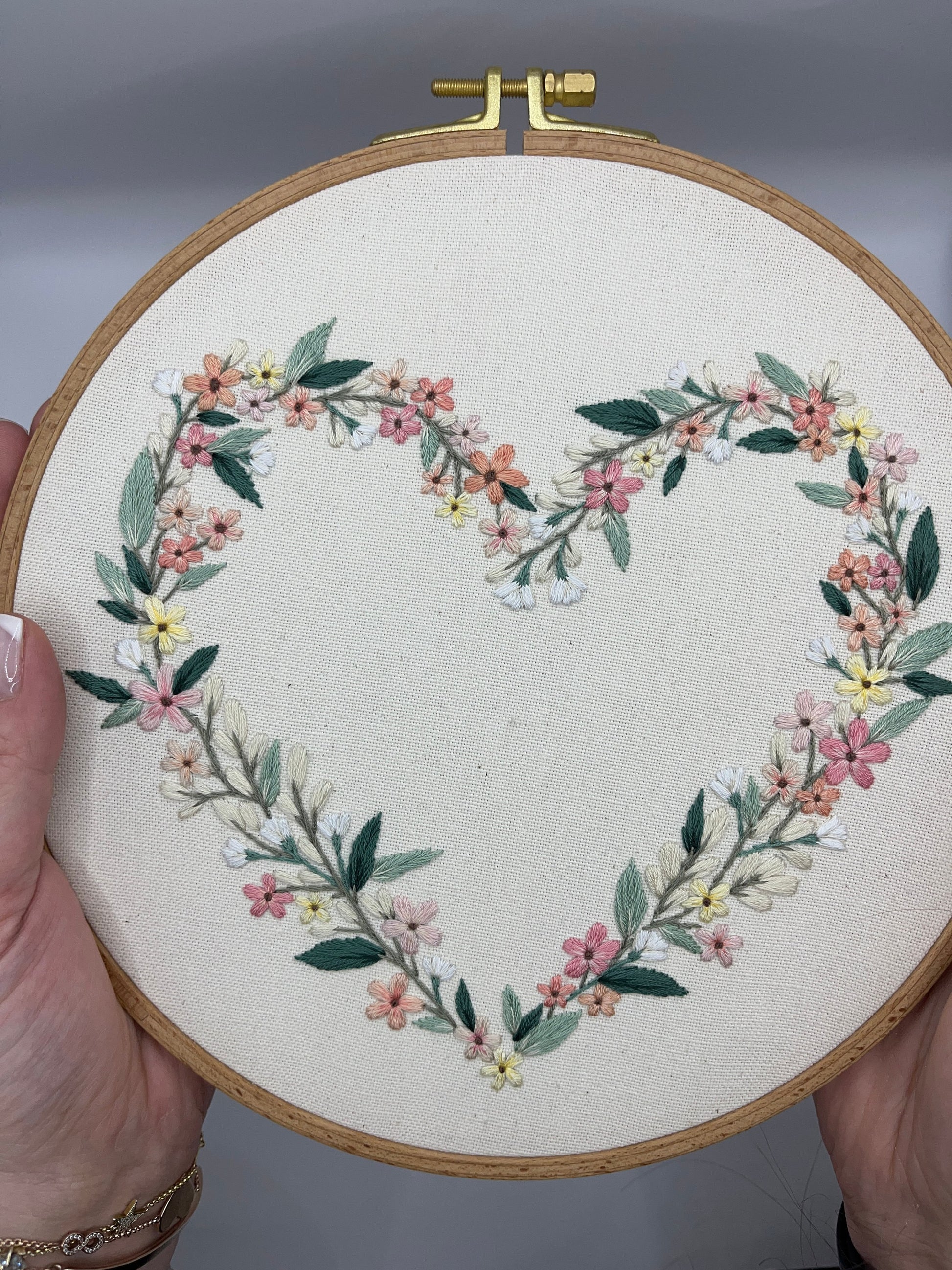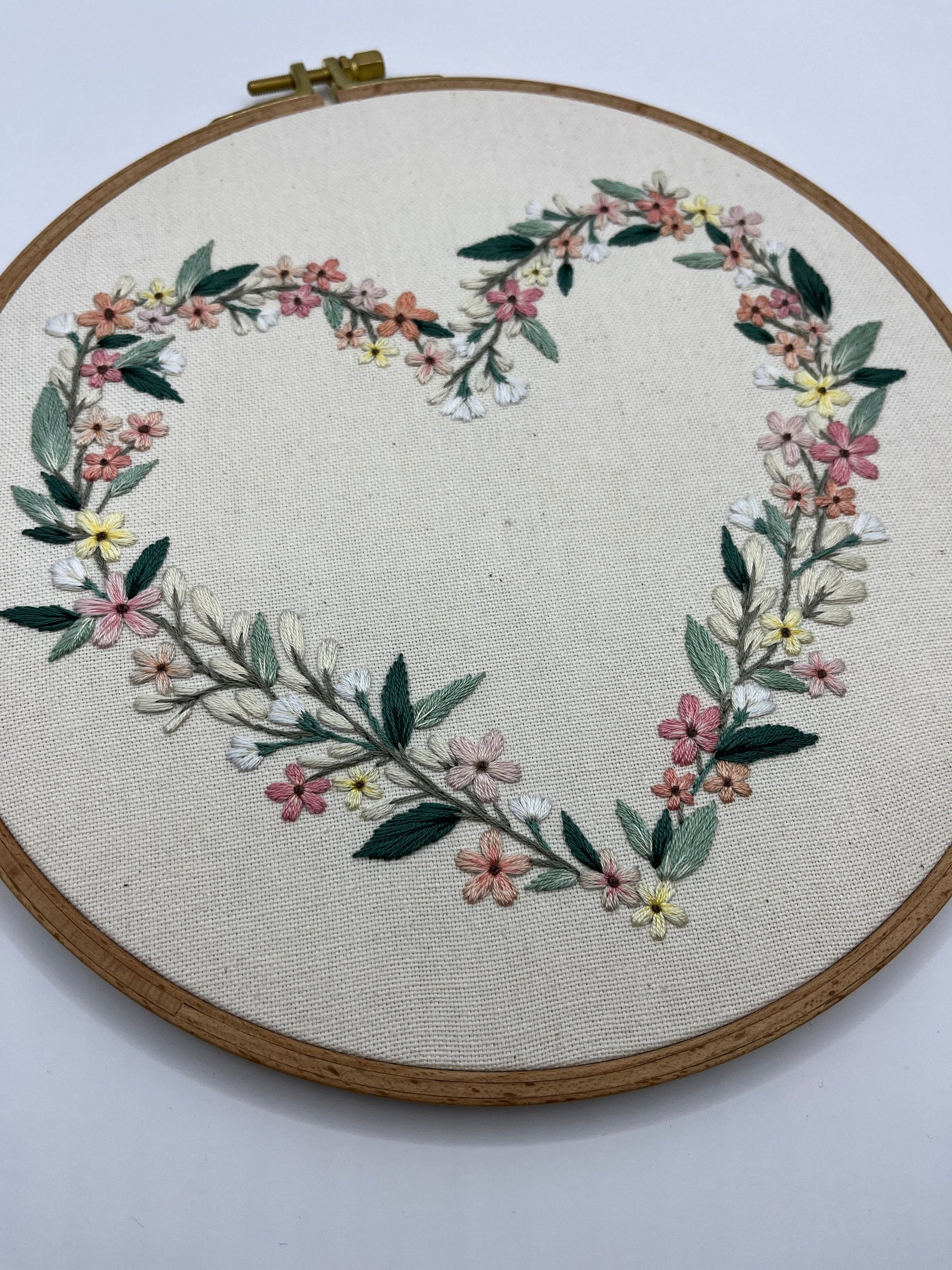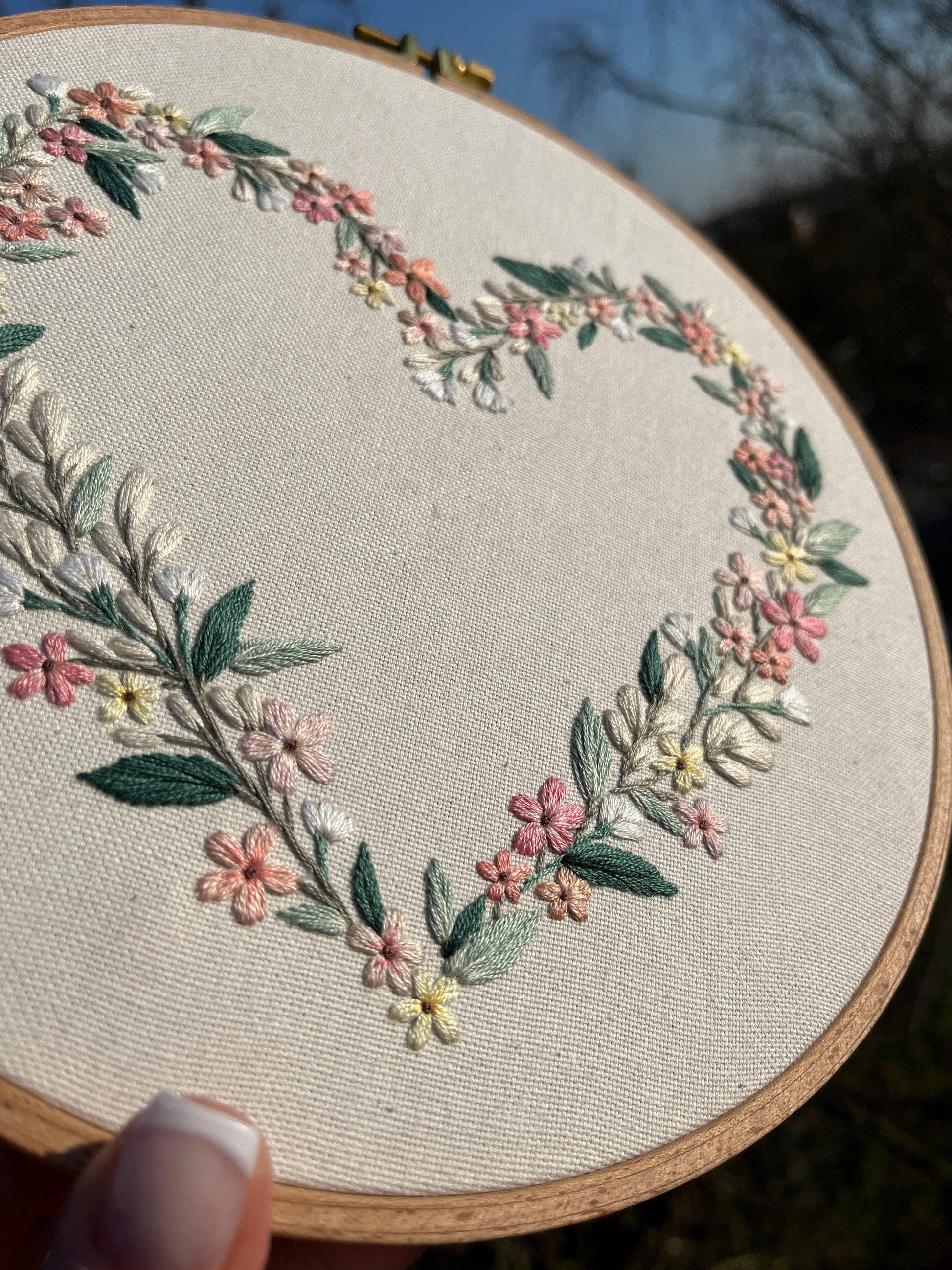 Mit der Stickvorlage "Blumenherz Ranke" hast du ein passendes Stickbild für ganz viele Anlässe. Ich denke, dass du daraus auch ein wunderschönes Türschild zaubern kannst. Das fertige Stickbild ist übrigens auch eine tolle Geschenkidee für deine Liebsten wie Mama, Papa, Oma, Opa, usw.